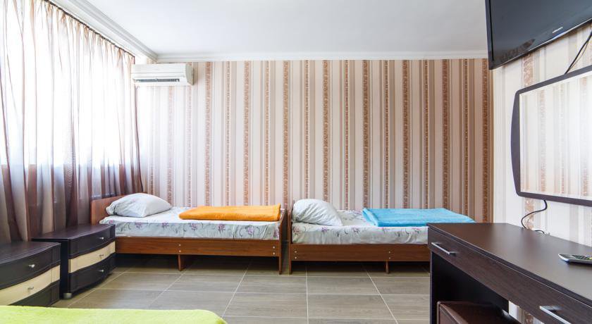 Четырехместный номер с видом на море, балконом и кондиционером.